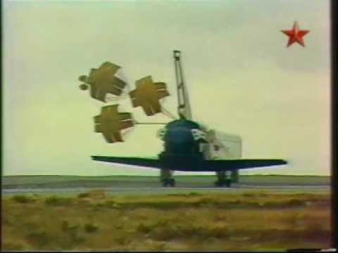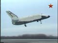 The Russian Space Shuttle "Buran" launched 15 November 1988. After completing two orbits, it landed 206 minutes later at Baikonur Cosmodrome. The whole flight was fully automatic, with no human on board. A second flight planned for 1993 never occured, due to cancellation of the Buran program after the dissolution of the Soviet Union.